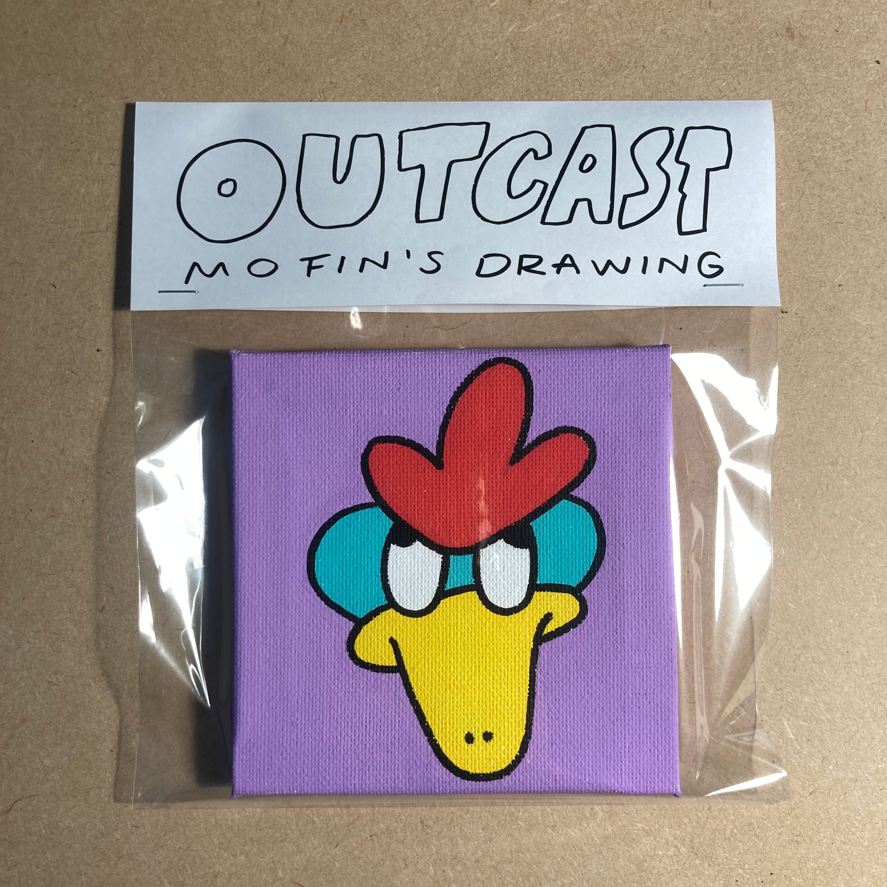 キャンバスアート一点物です。 優柔不断のニワトリ君。 10×10cmの正方形キャンバスです。